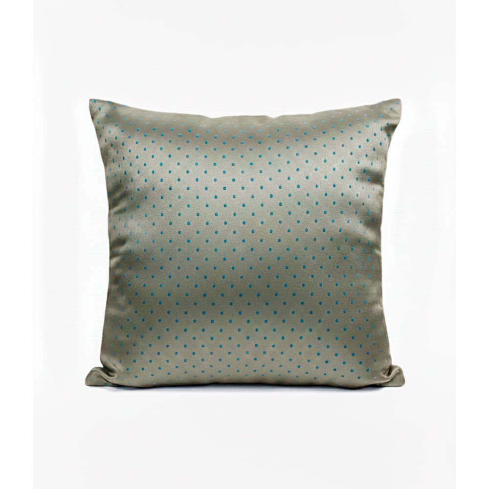 Capa para Almofada em Tecido Jacquard Tradicional Poá Azul e Dourado